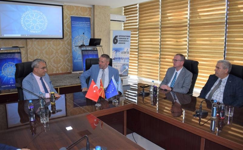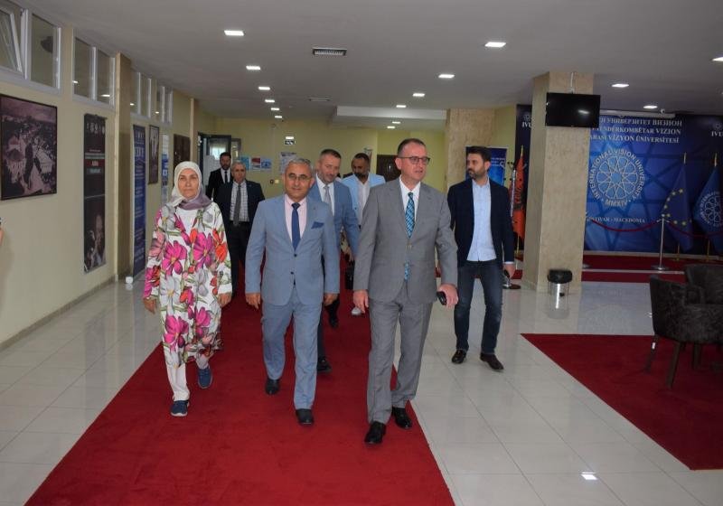 Uluslararası VİZYON Üniversitesi Rektör yardımcısı Prof. Dr. Mensur NUREDİN, üniversite Dekanları ve Hocaları Prof. Dr. Alim IŞIK ve Gostivar Belediye Başkanı Prof.Dr. Arben TARAVARİ’yi karşıladı.