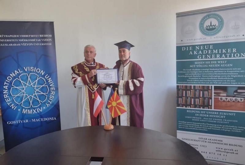 Kuzey Makedonya, Türkiye ve Avusturya'dan 3 ülke hocalarının katılımıyla, Prof.Dr. Musa Musai danışmanlığında hazırlanan Doktora Tezinin savunmasında VİZYON Üniversitesi Rektörü Prof. Dr. Fadil Hoca ve Rektör Yardimcisi Prof. Dr. Mensur Nuredin'in yanısıra, Türkiye'nin Bahçeşehir Üniversitesinden Prof.Dr. Fatmagül Cirhinlioğlu ve Türkiye'nin Bursa Teknik Üniversitesinden Prof.Dr.Abdullah Işiklar ve VİZYON Üniversitesi Doktora Programlarından sorumlu olan Prof.Dr. Bülent Dervişten oluşan jüri heyeti karşısında Avrupa’da - Avusturya-Viyana'da Türkçe olarak tarihte ilk Doktora Tezi savunulmuş oldu.
